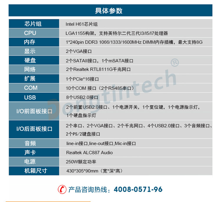 • 2U多串口工控机 双显工业服务器电脑 DT-S2010MB-JH61MC