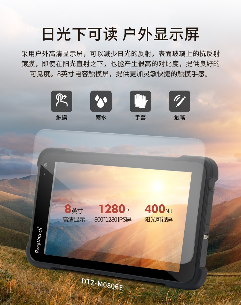 • 8英寸工业加固三防平板 IP65等级笔记本 DTZ-M0806E